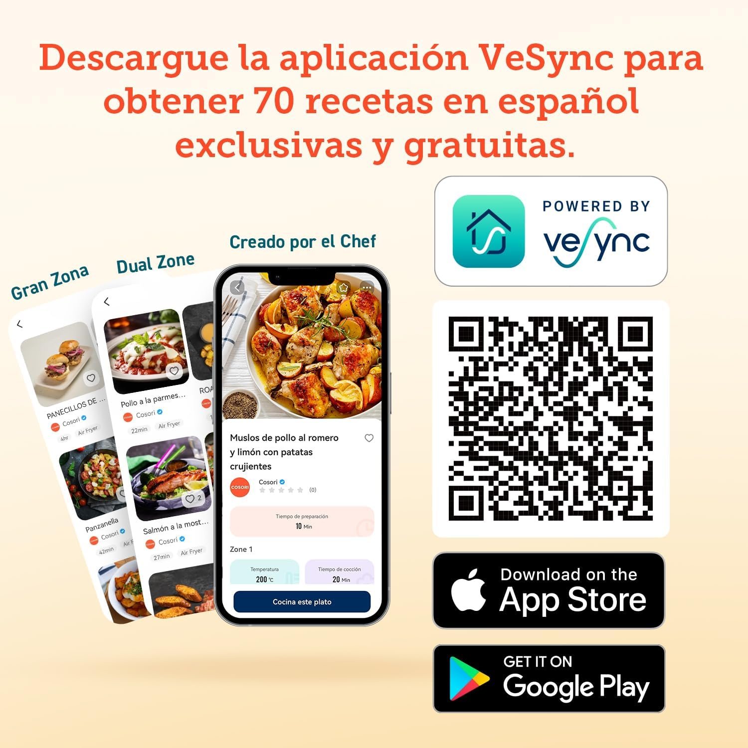 Sí, viene con un recetario físico y además puedes acceder a decenas de recetas adicionales a través de la app VeSync, con instrucciones detalladas paso a paso.