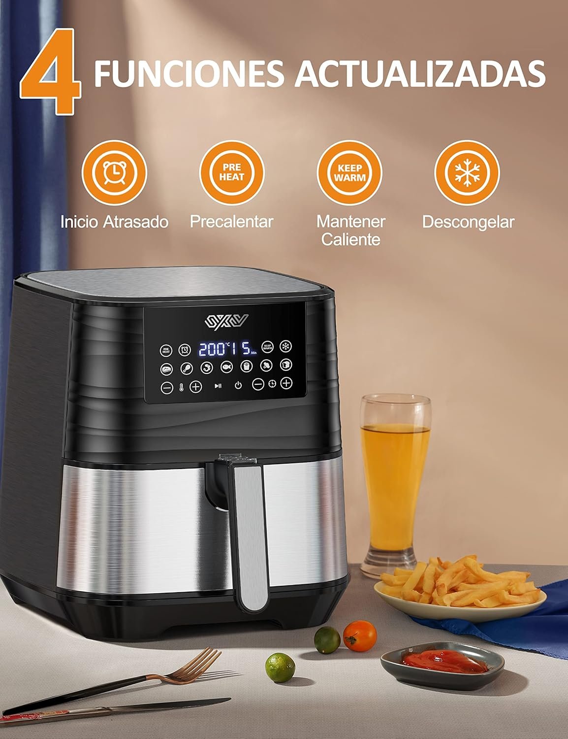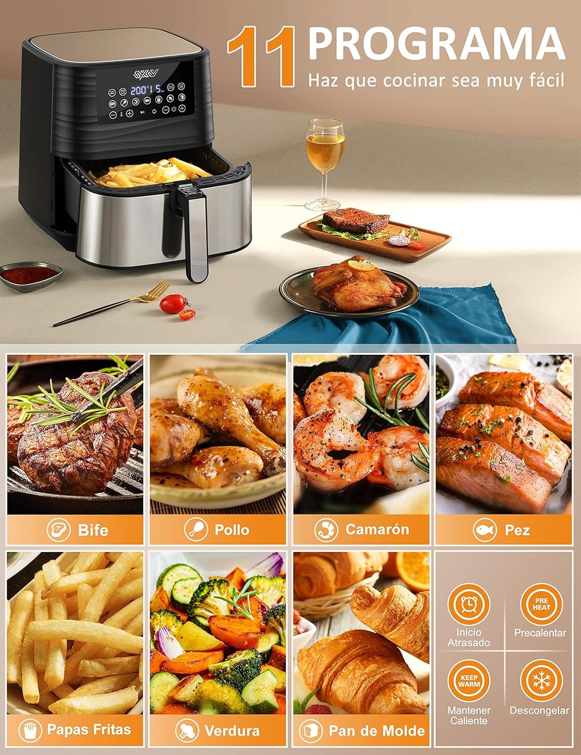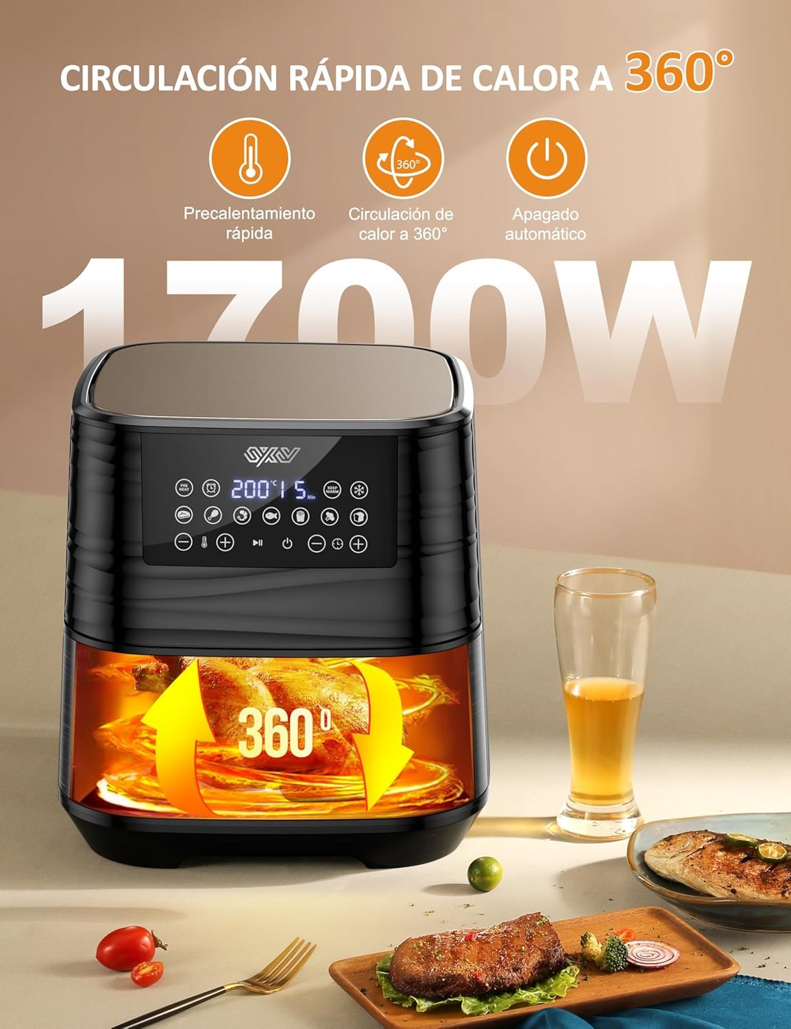 Con su potente tecnología de circulación de aire caliente de 360°, esta freidora cocina tus platos manteniendo el sabor y la textura, pero sin necesidad de freír con aceite. Si buscas una opción para cocinar saludable sin complicarte, sigue leyendo porque esta reseña te interesa.