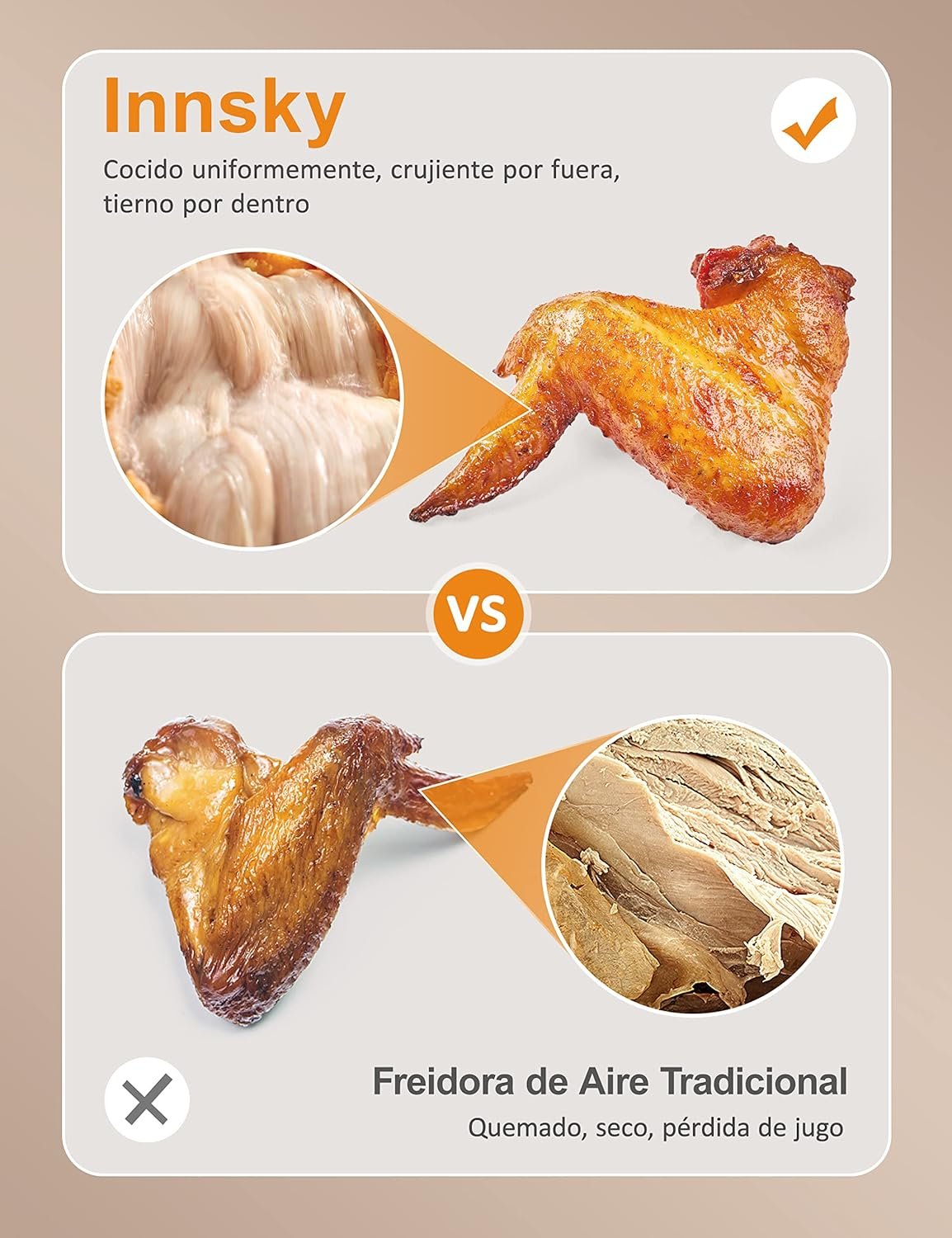 ¿Estás cansado de cocinar con exceso de aceite? ¿Te gustaría disfrutar de patatas crujientes, alitas doradas o un pollo jugoso sin remordimientos? Entonces prepárate, porque la Innsky Freidora de Aire sin Aceite de 5,5 litros puede ser el electrodoméstico que transforme tu cocina para siempre.